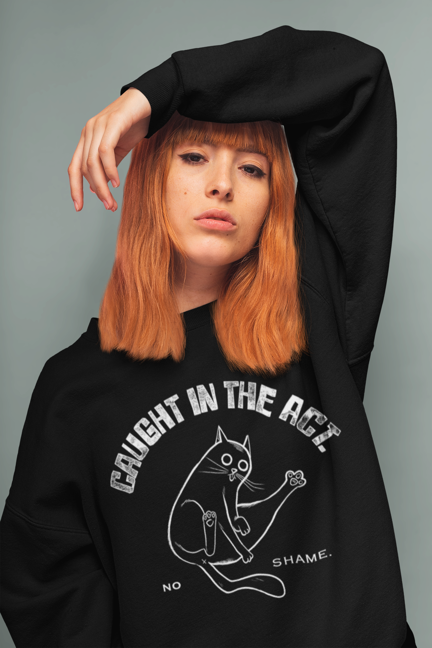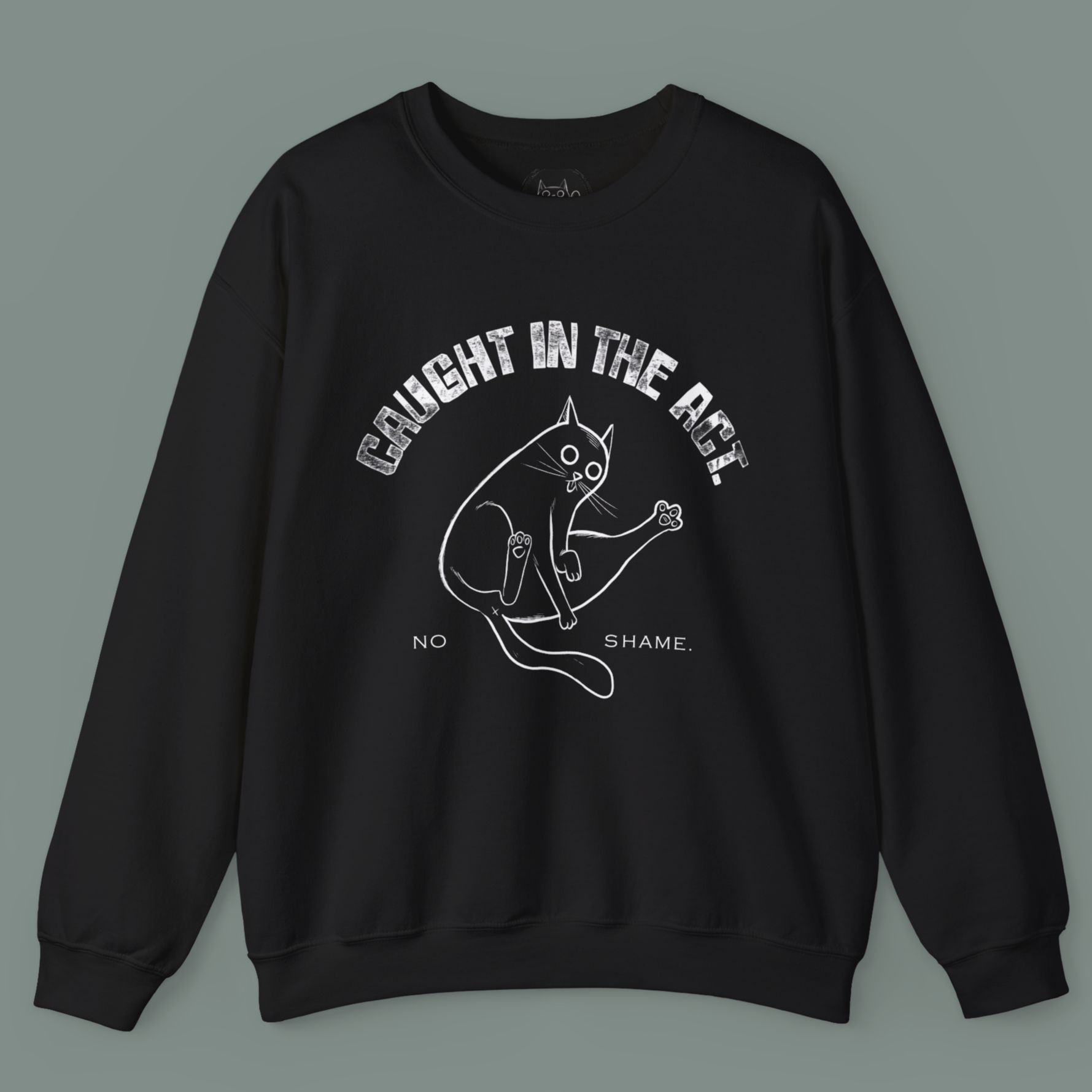 This medium-heavy black sweatshirt wraps you in comfort and unapologetic energy, featuring a cat mid-butt-lick with that iconic stare. Captioned with: